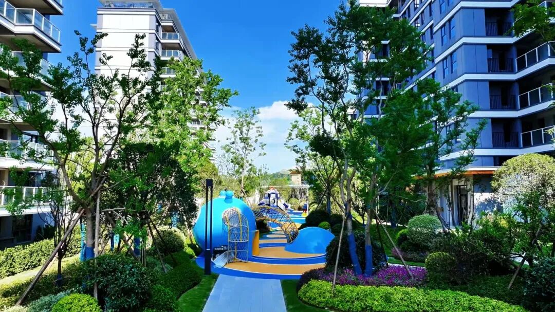 步入项目一期,图纸上的园林构思已化作美丽实景,以鲜活姿态呈现在眼前。景观步道的砖石循着归家动线有序铺就,每一块都承载着踏实的归属感。阳光下的草坪舒展着清晰柔软的纹理,如同铺开的大自然绒毯。修剪齐整的灌木错落排列,仿佛列队等候的侍者,将蓬勃生机悄悄送入眼底。专为孩童打造的儿童乐园里,圆润的滑梯正静待小探险家们解锁欢乐,地面藏着设计巧思的拼花暗藏童趣惊喜,无论是追逐嬉戏还是驻足探索,都能收获满满乐趣,成为自带“打卡属性”的亲子互动优选地。